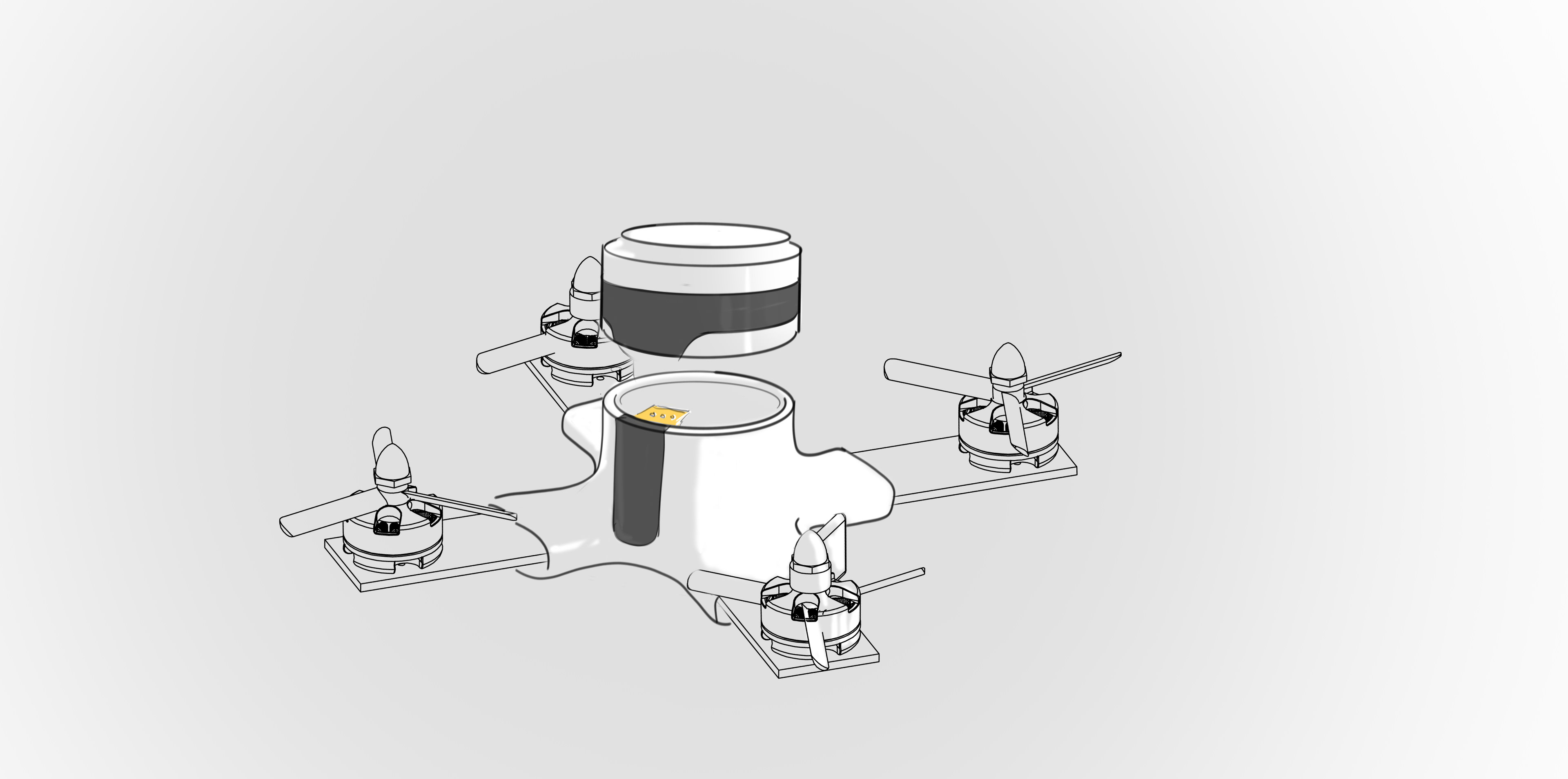 The roll cage is engineered to protect the drone and its propellors from crashes. The twelve removable ribs make it easy to repair the cage and remove the drone.